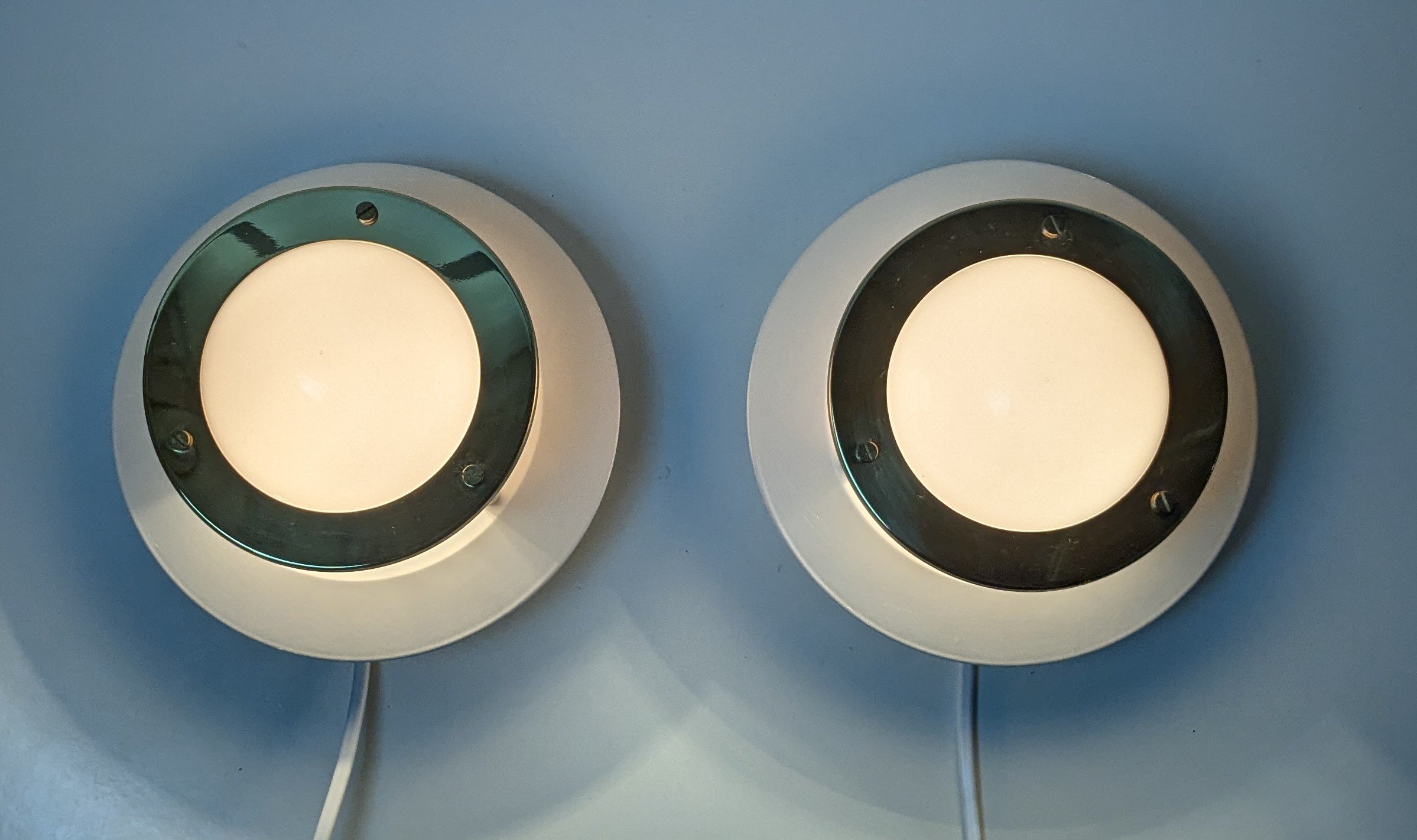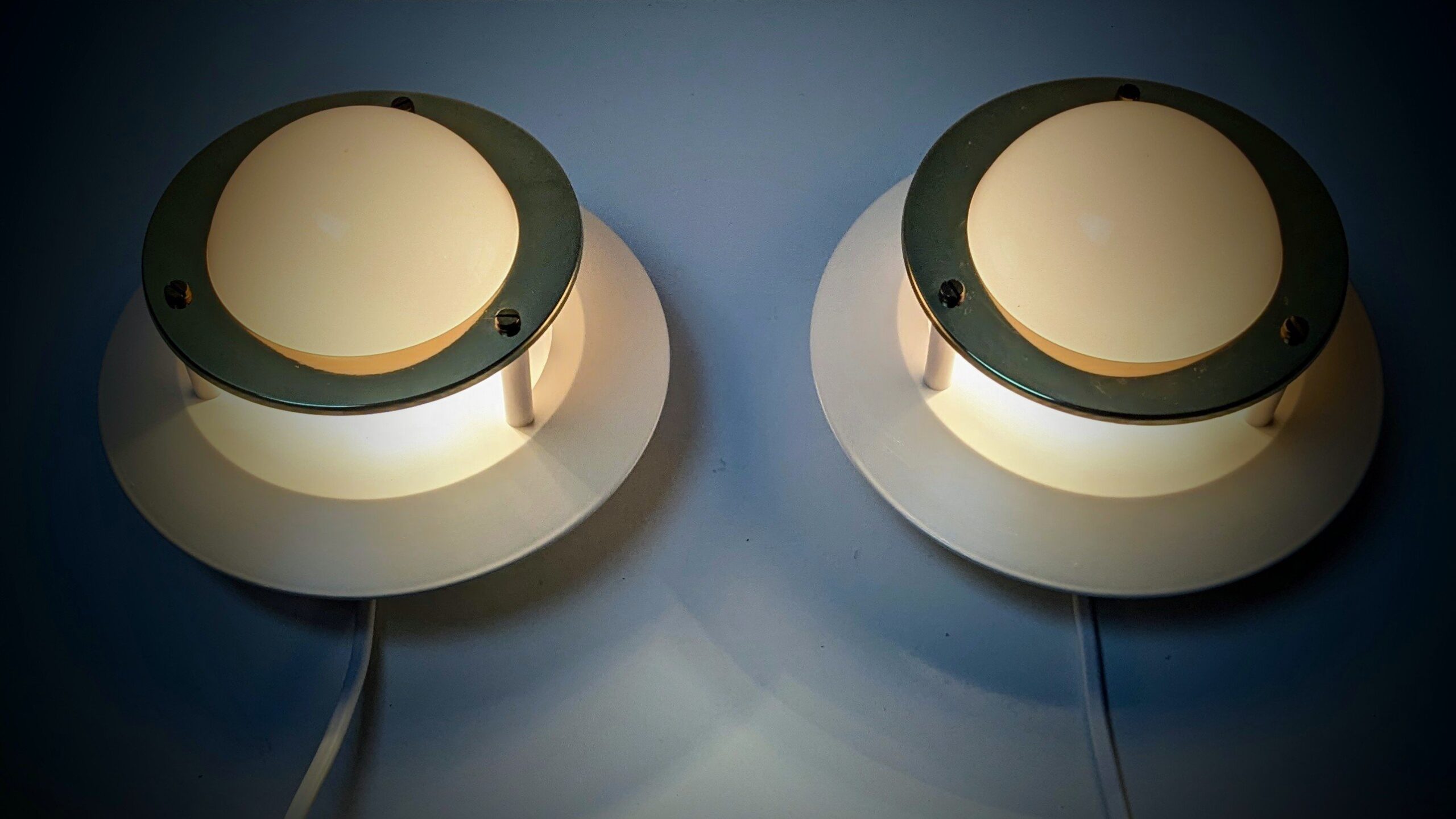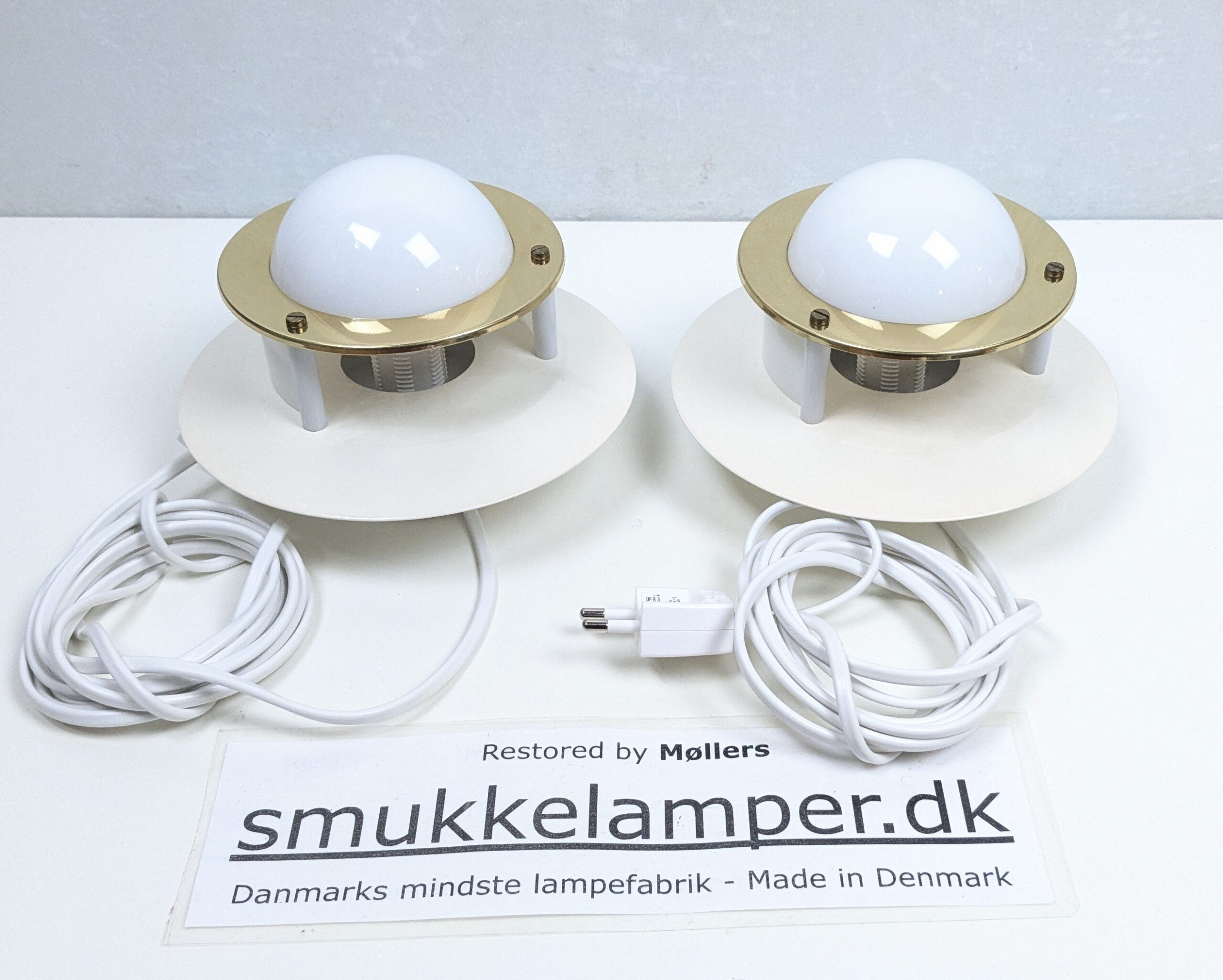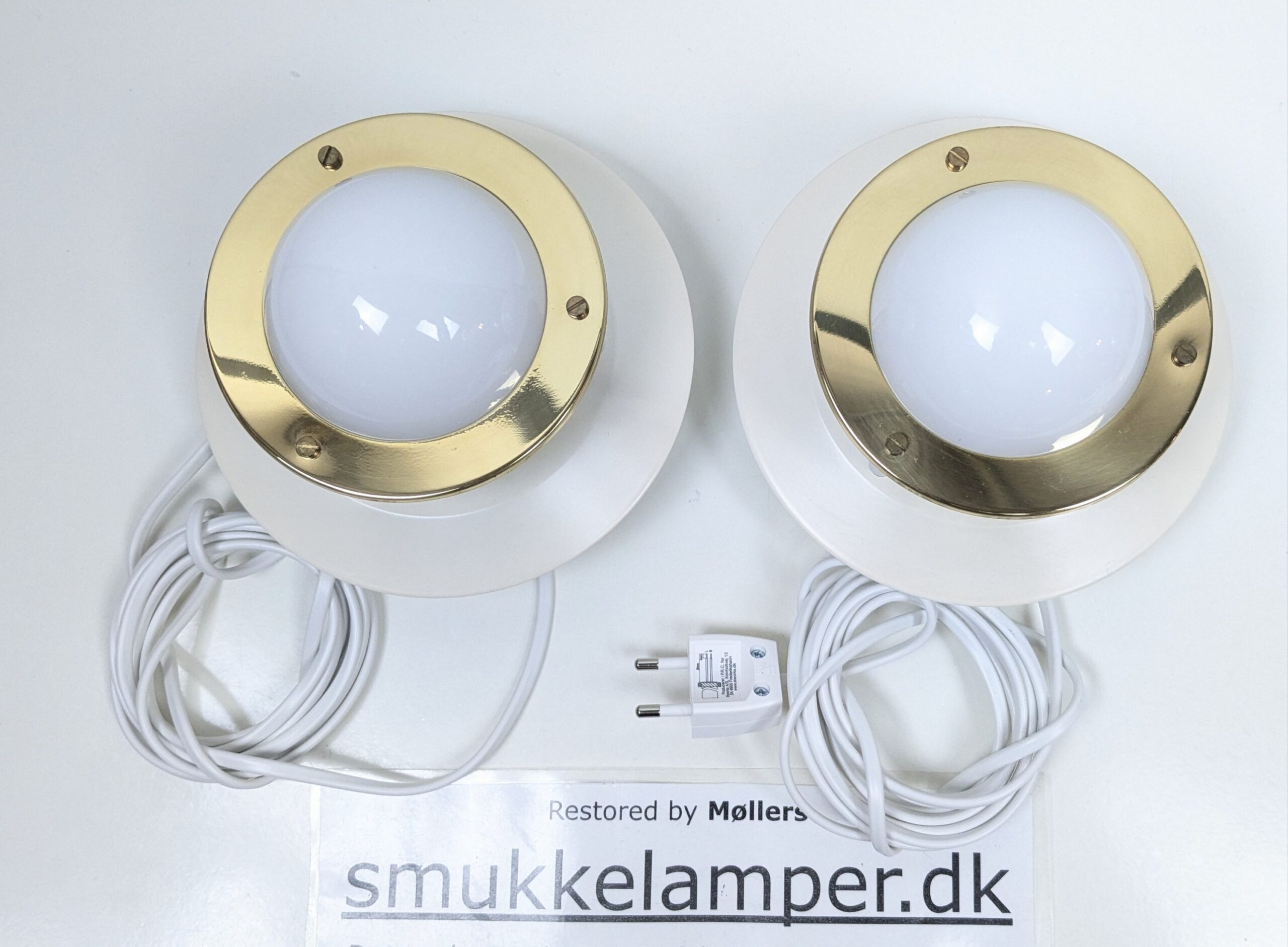 Vores værksted har monteret 2, 5 meter ny hvid ledning ny E14 fatning i hver væglampe og ny stikprop.