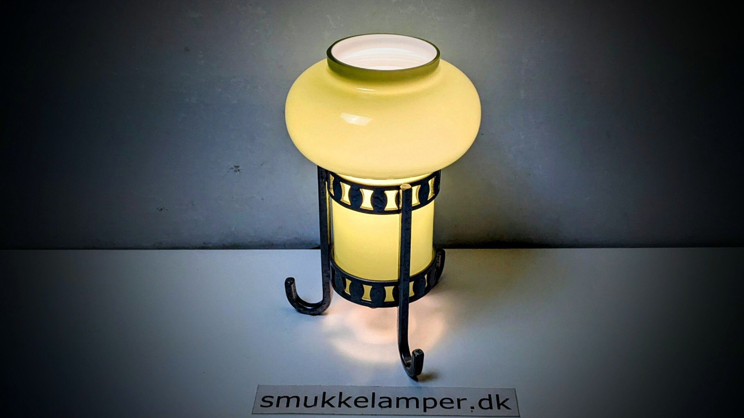 Metal base og håndlavet svensk glas.