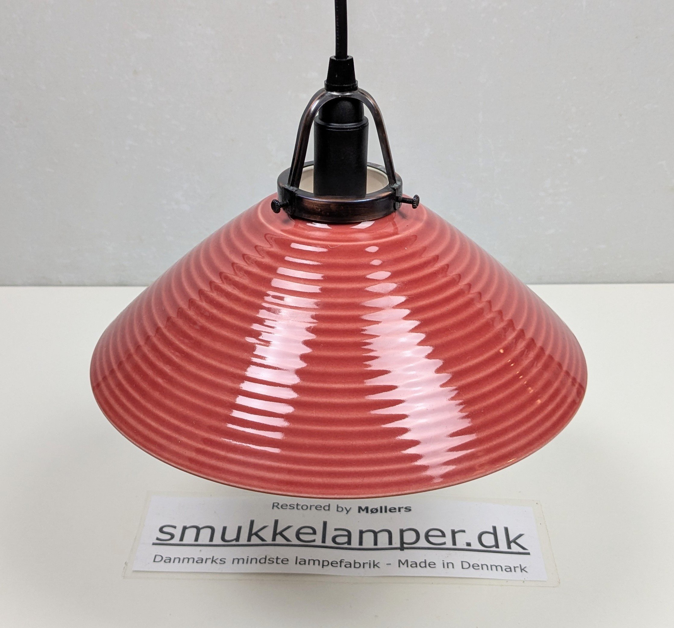 Denne smukke mørke rosa Søholm keramik pendel er 27 cm i diameter.