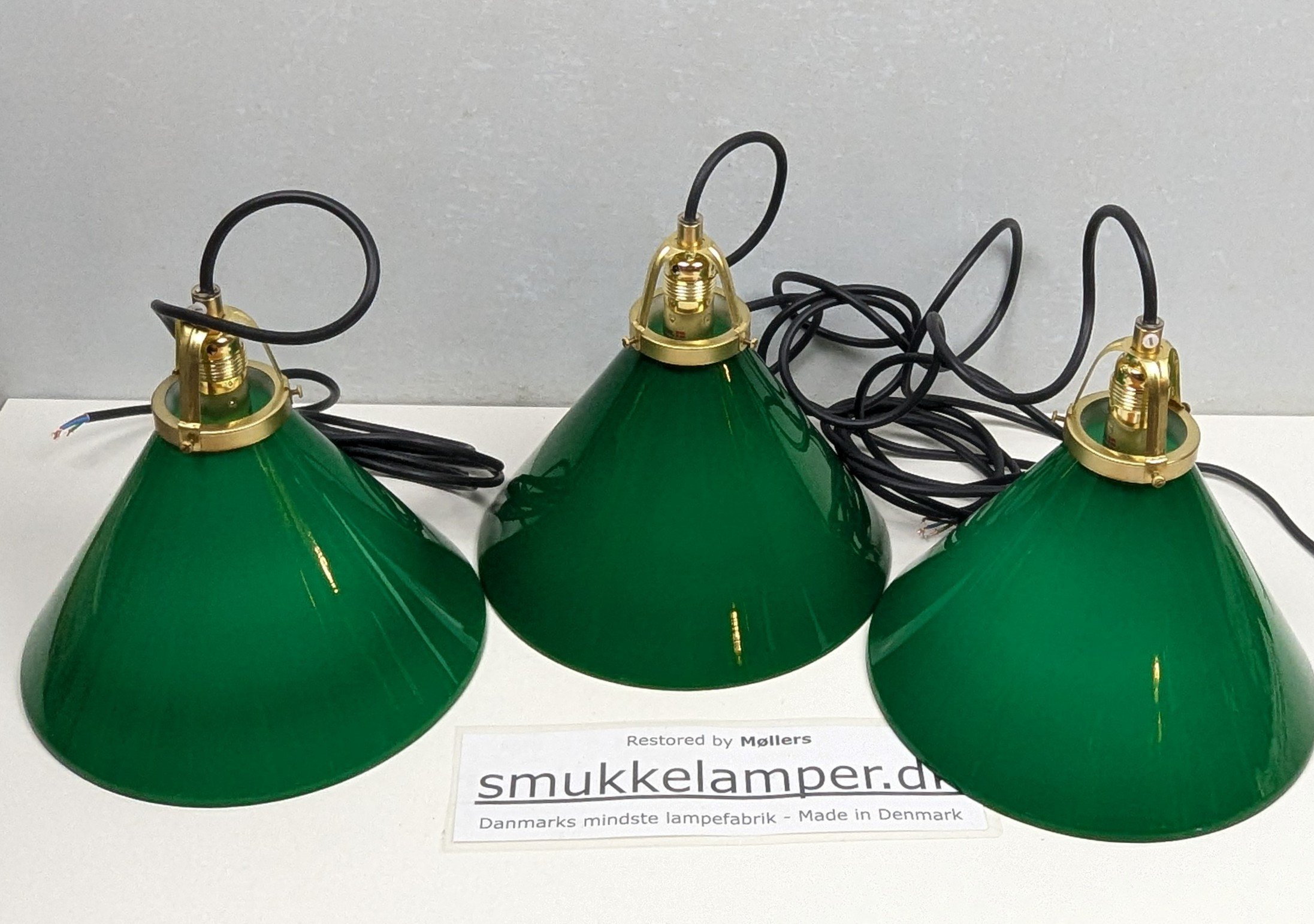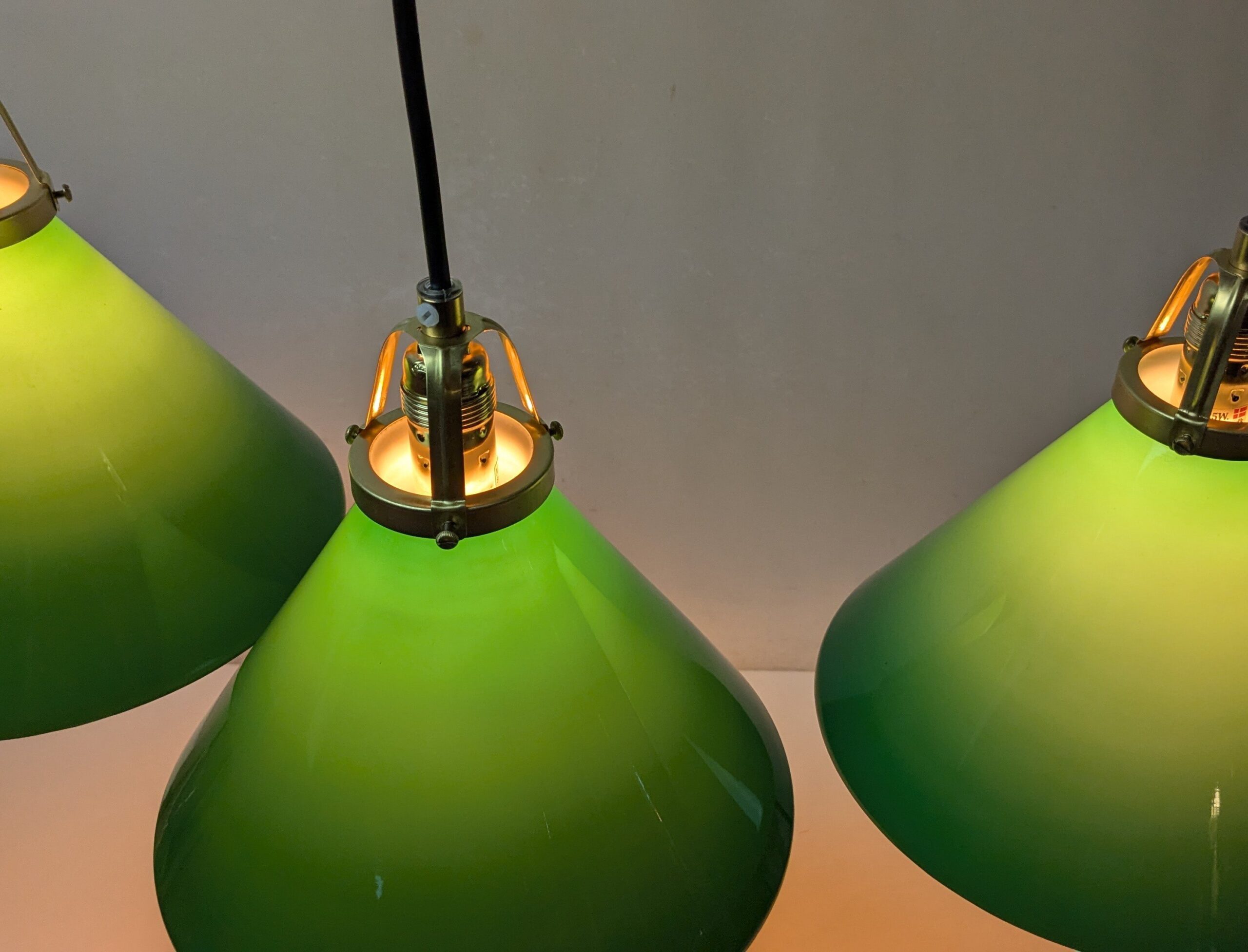 Disse smukke grønne skomager pendler har hængt på en restauration på Bornholm.