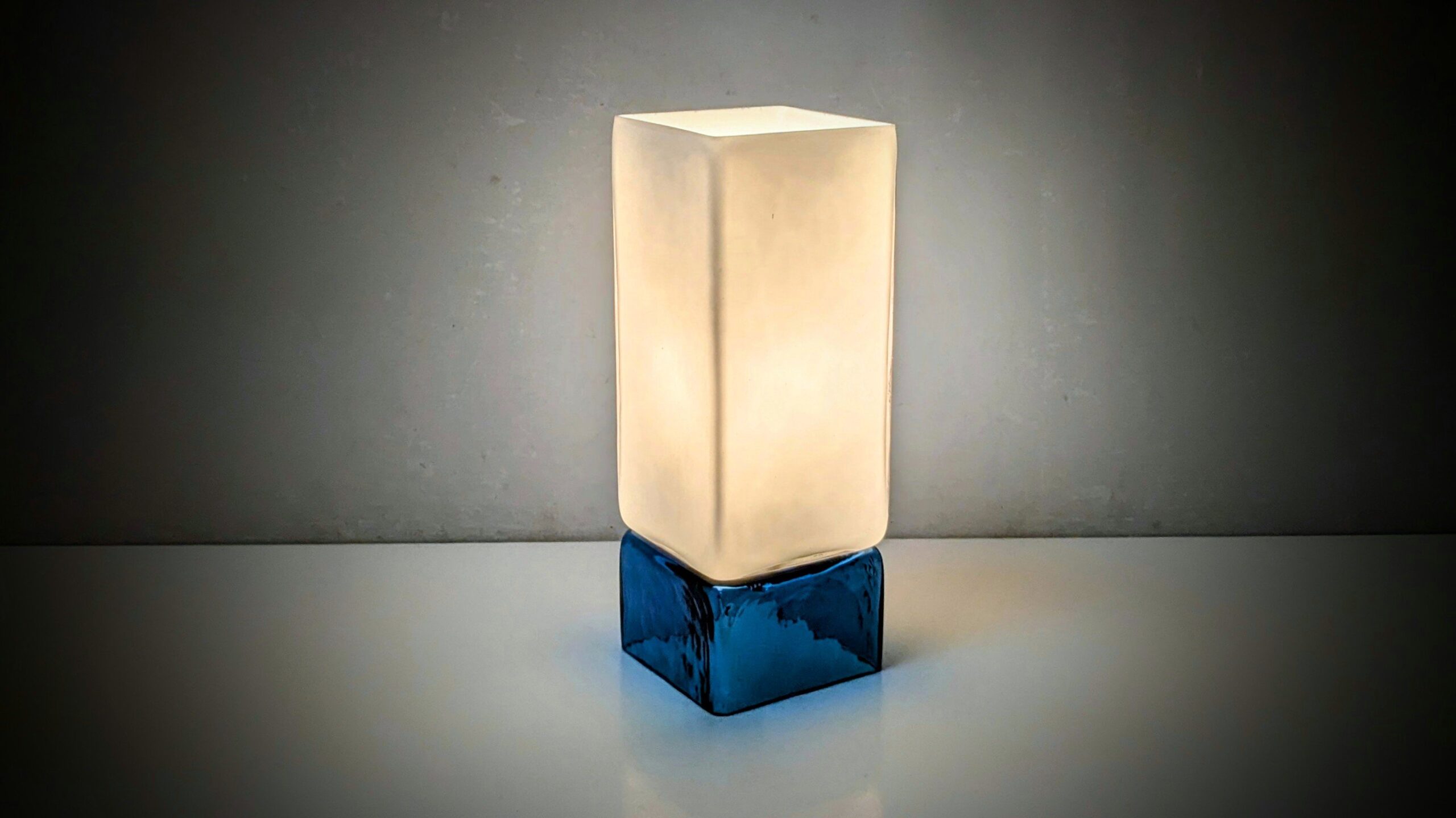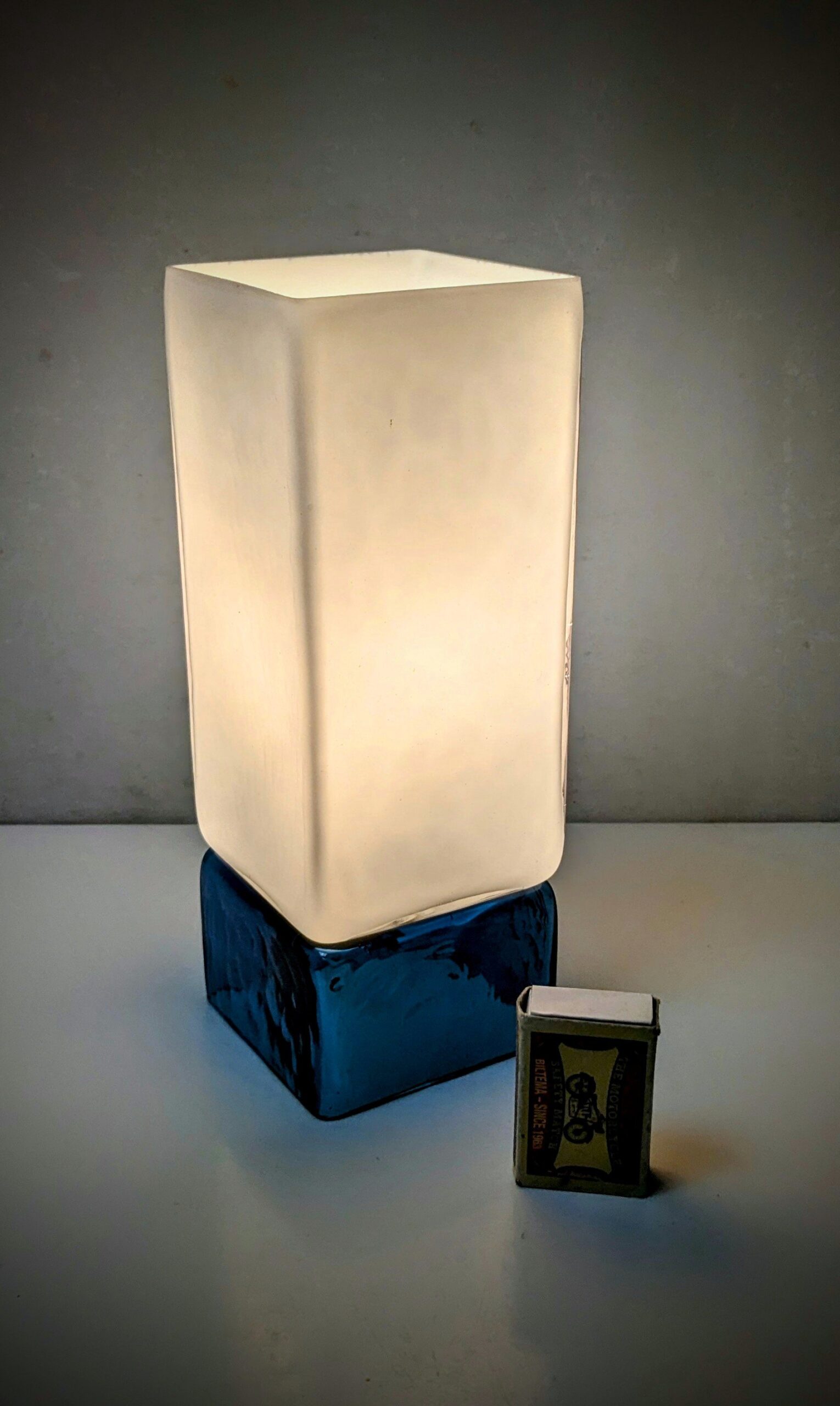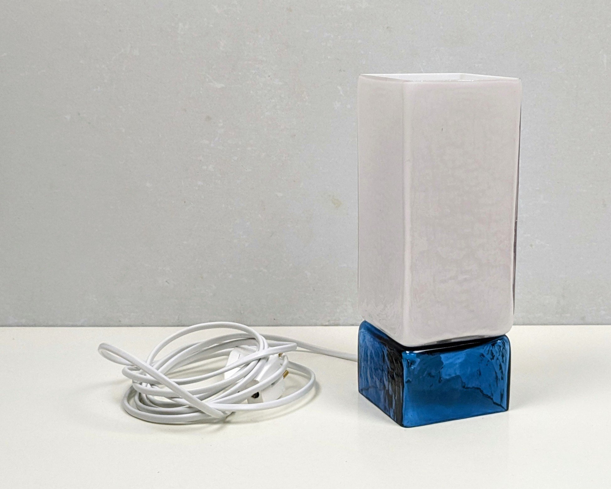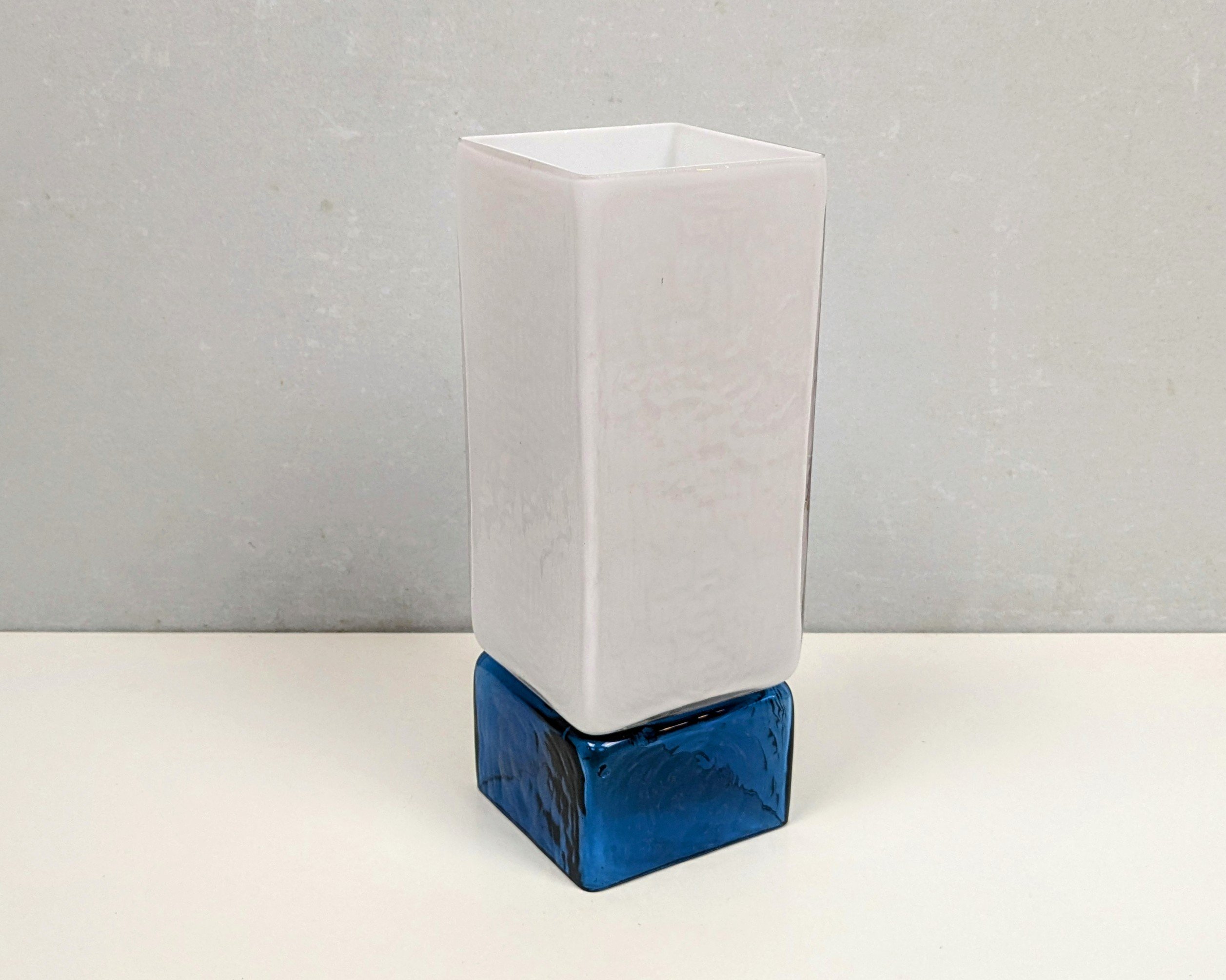 Smuk blå glasbund og hvid opal glas top.