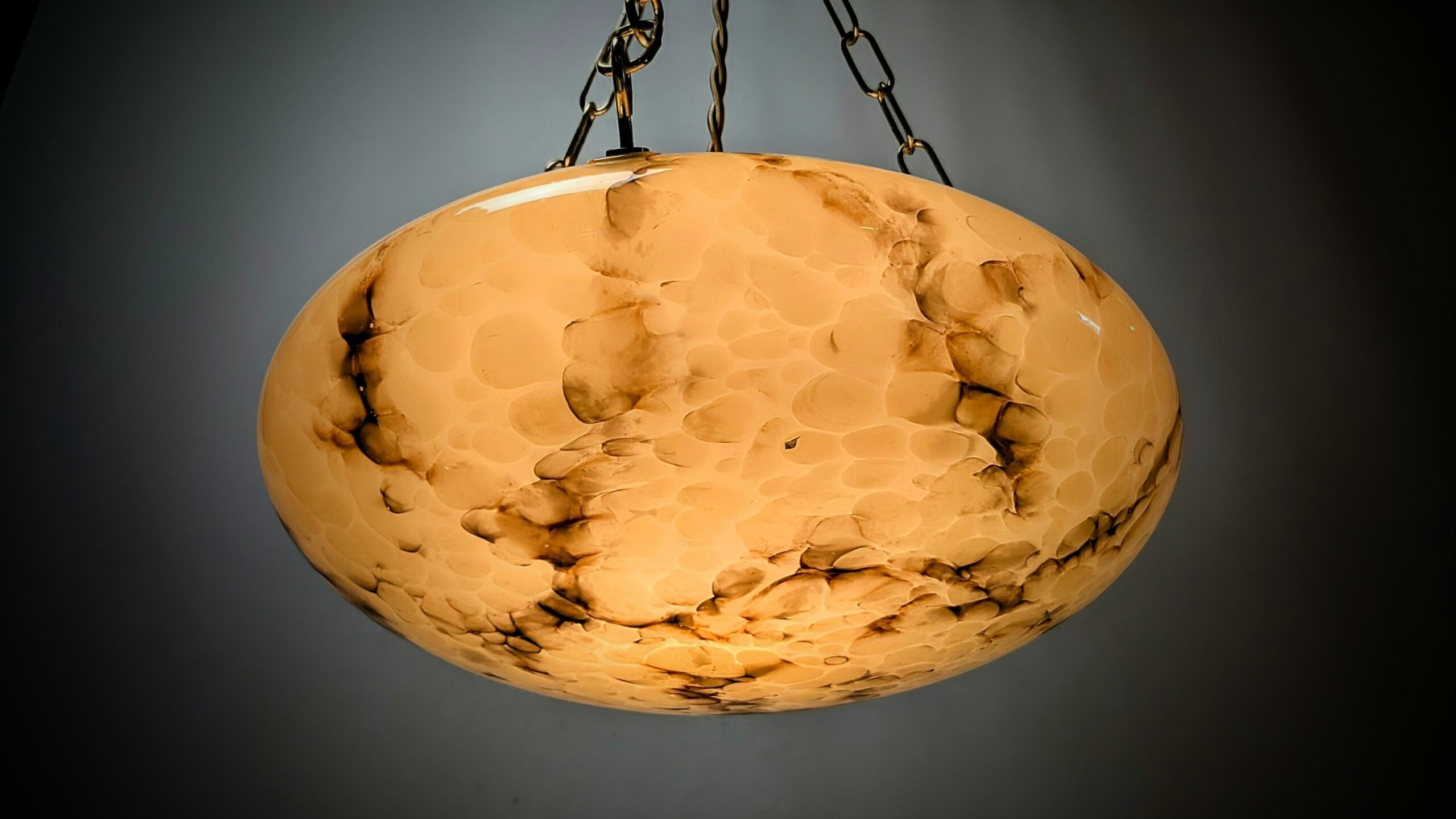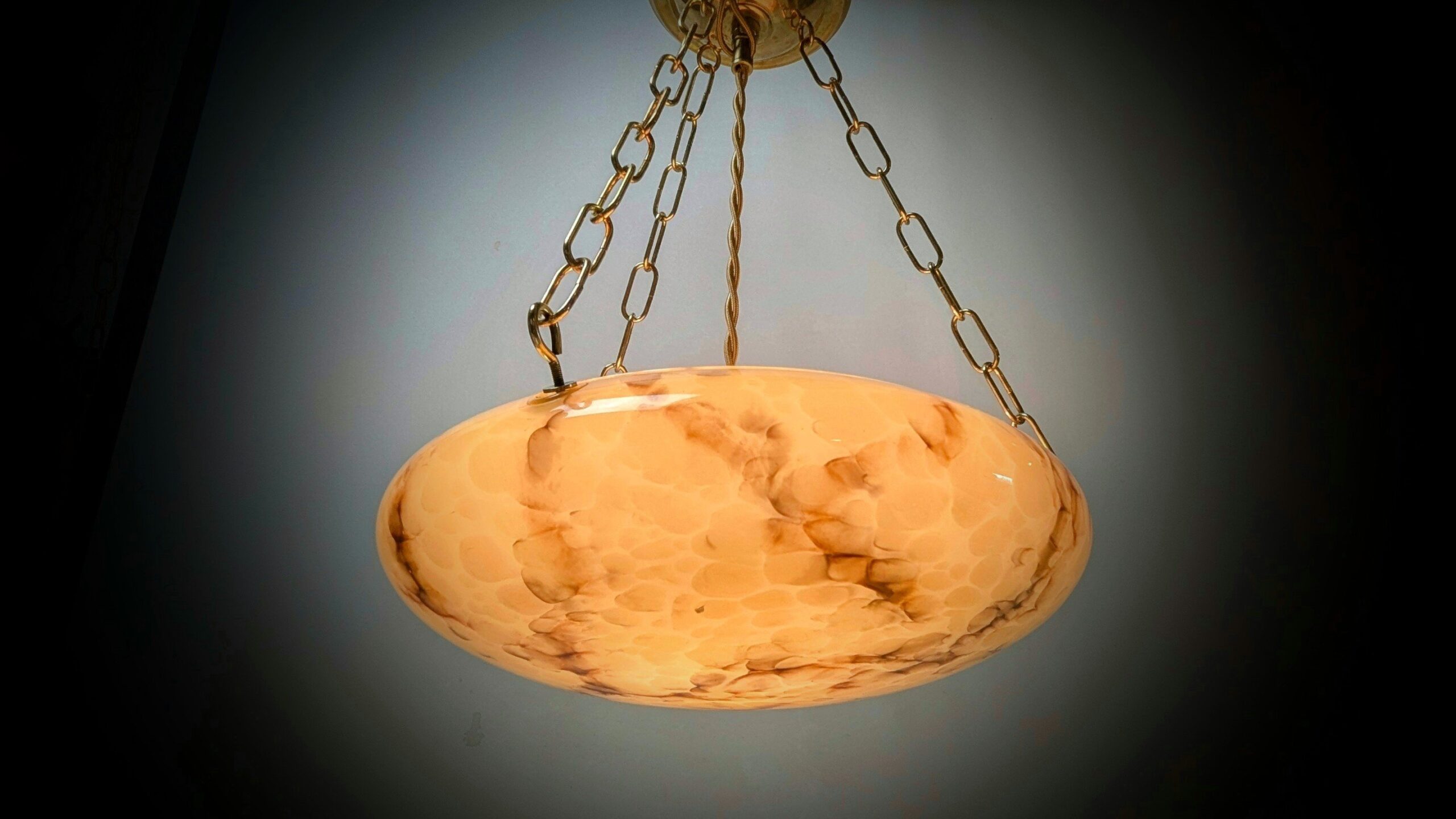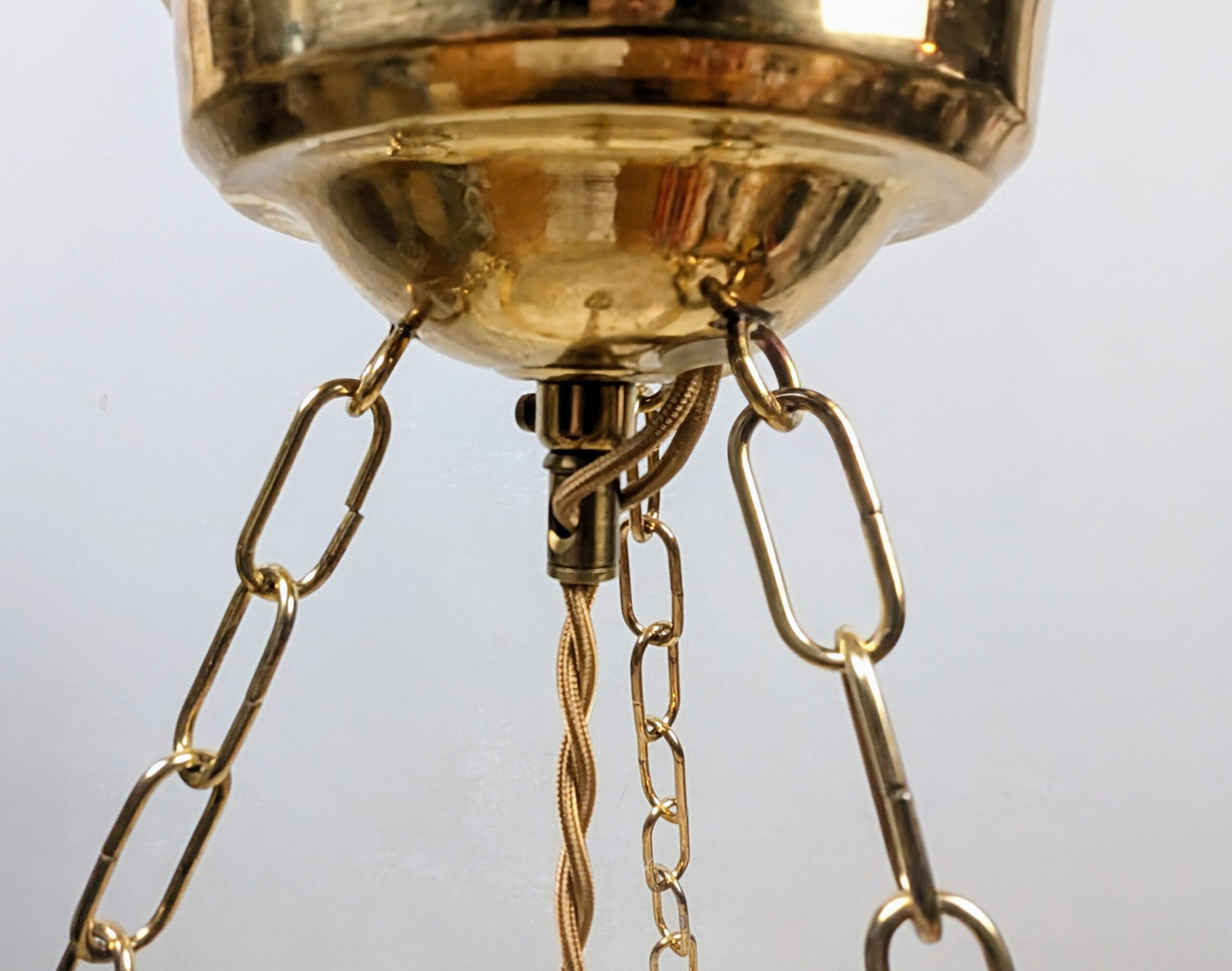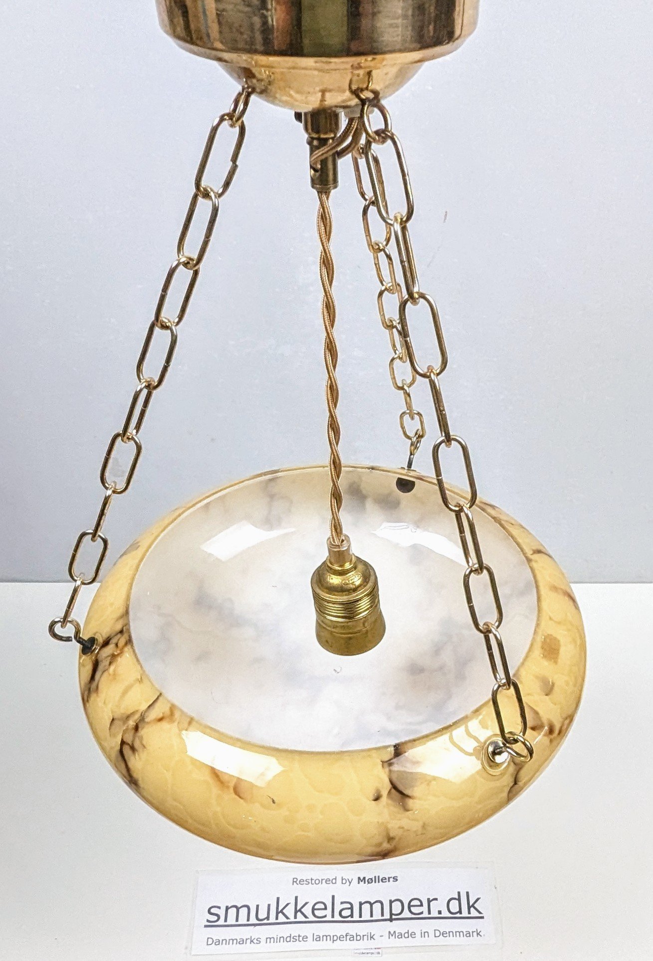 Denne skønne gamle ampel har fået monteret et helt andet rengjort ophæng fra 1950 i messing.