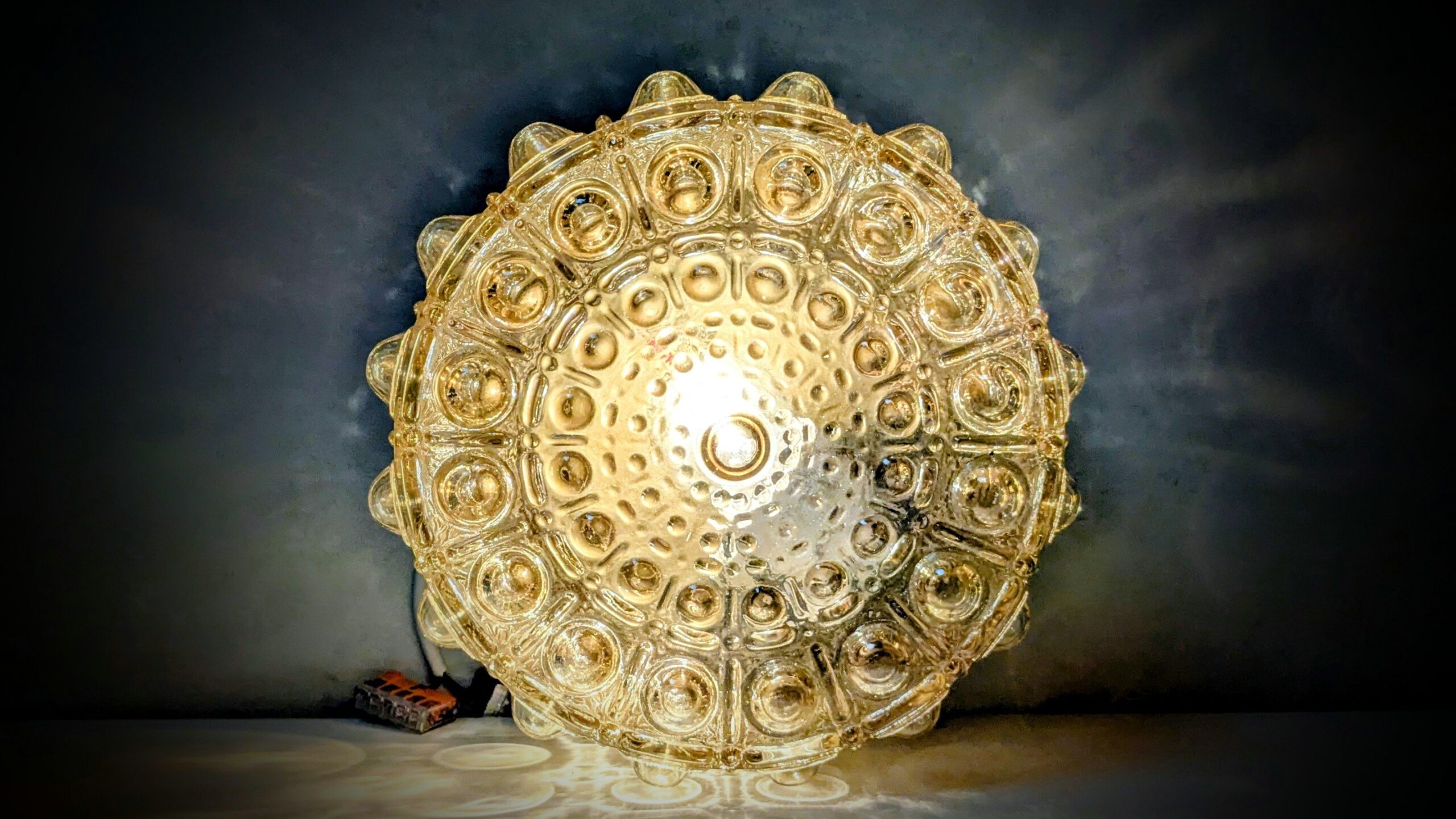 Denne plafond er restaureret. Dvs at ophæng er blevet delvist nylakeret og der er monteret nye rustfri dele m.m