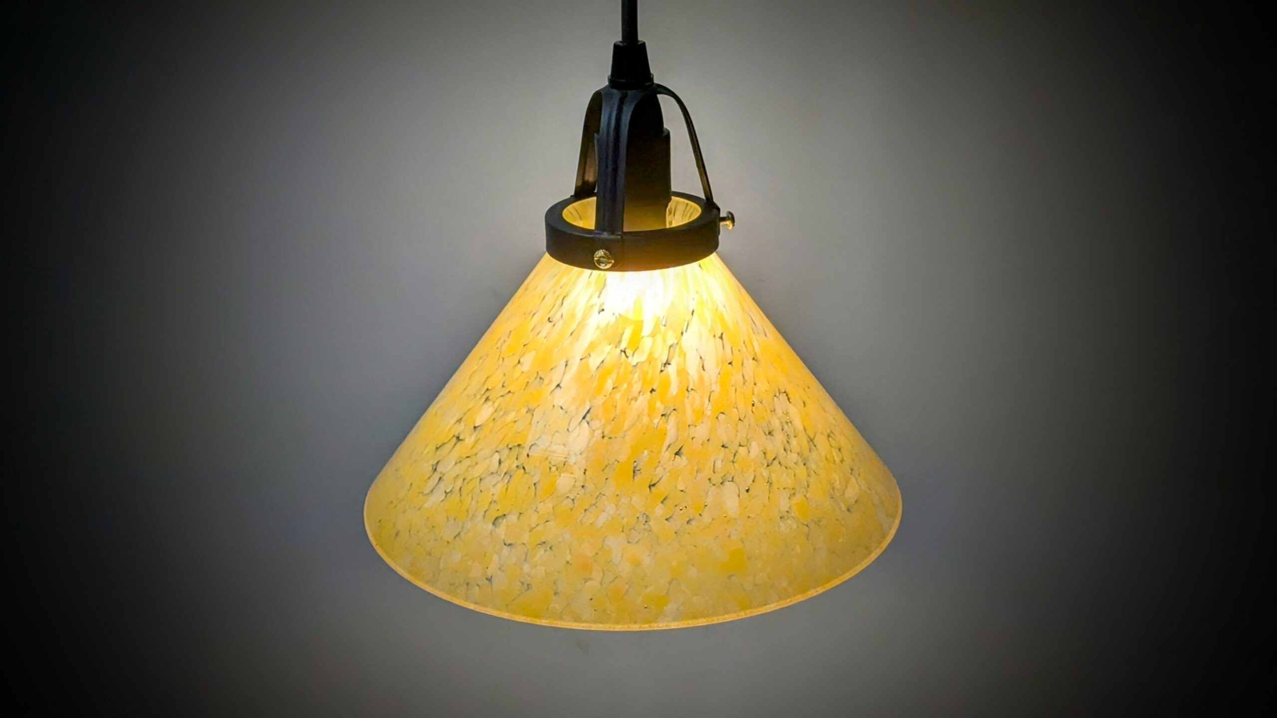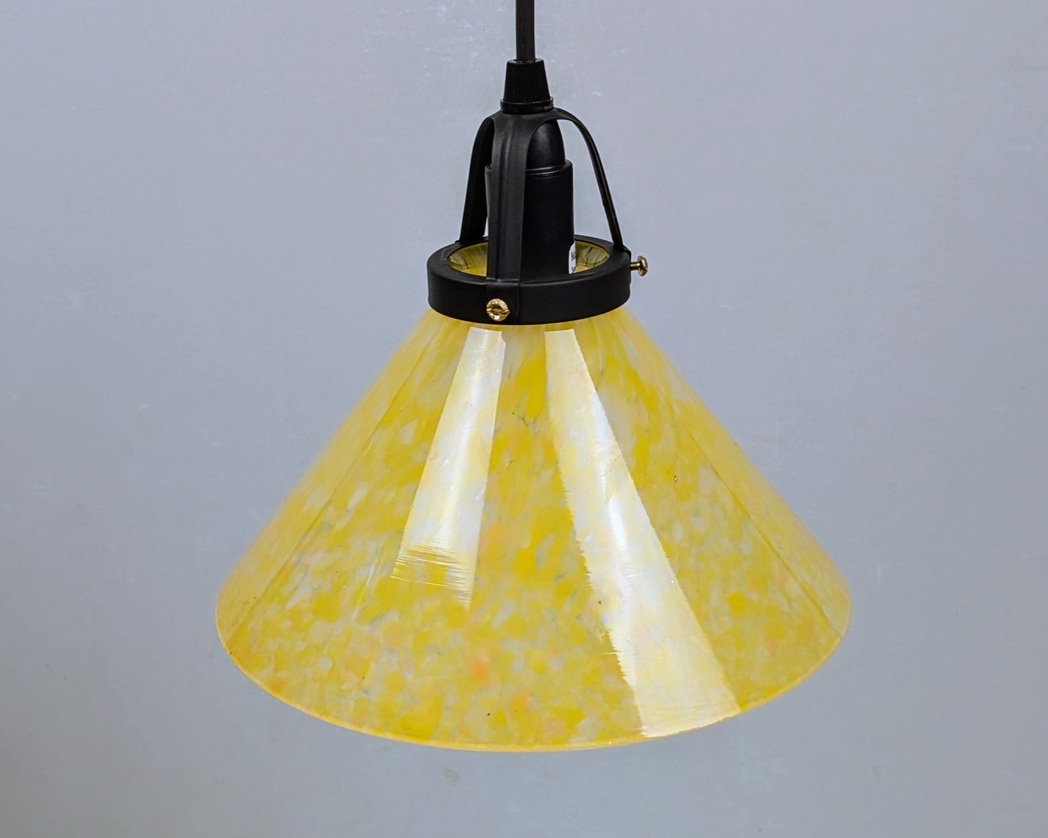 Vores værksted har monteret 2, 5 meter ny sort ledning, ny E14 fatning og nylakeret sort glasholder som også er ny.
