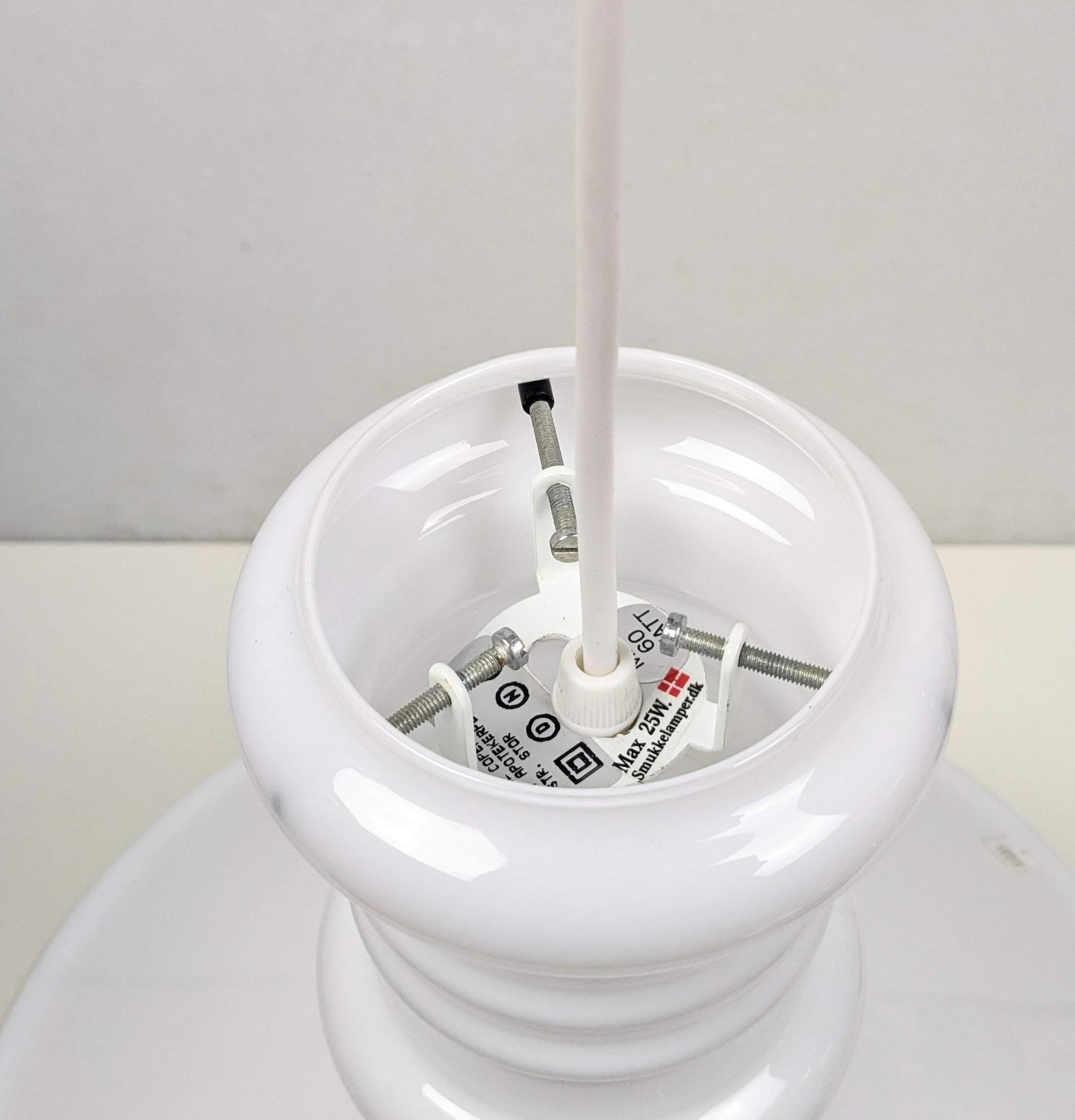Vores værksted har monteret 2, 5 meter ny hvid ledning. Ny E27 fatning m.m